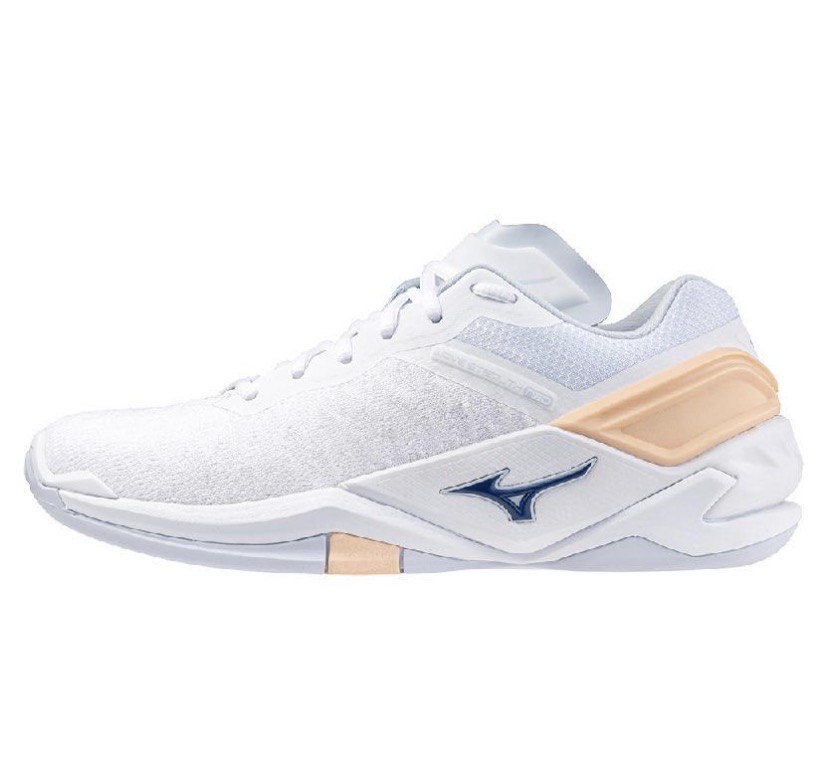 MIZUNO, WAVE STEALTH NEO, HANDBALL, White/Navy Peony/Peach Parfait, WOMEN, US 7,5 /EUR 38 /UK 5 /СМ 24